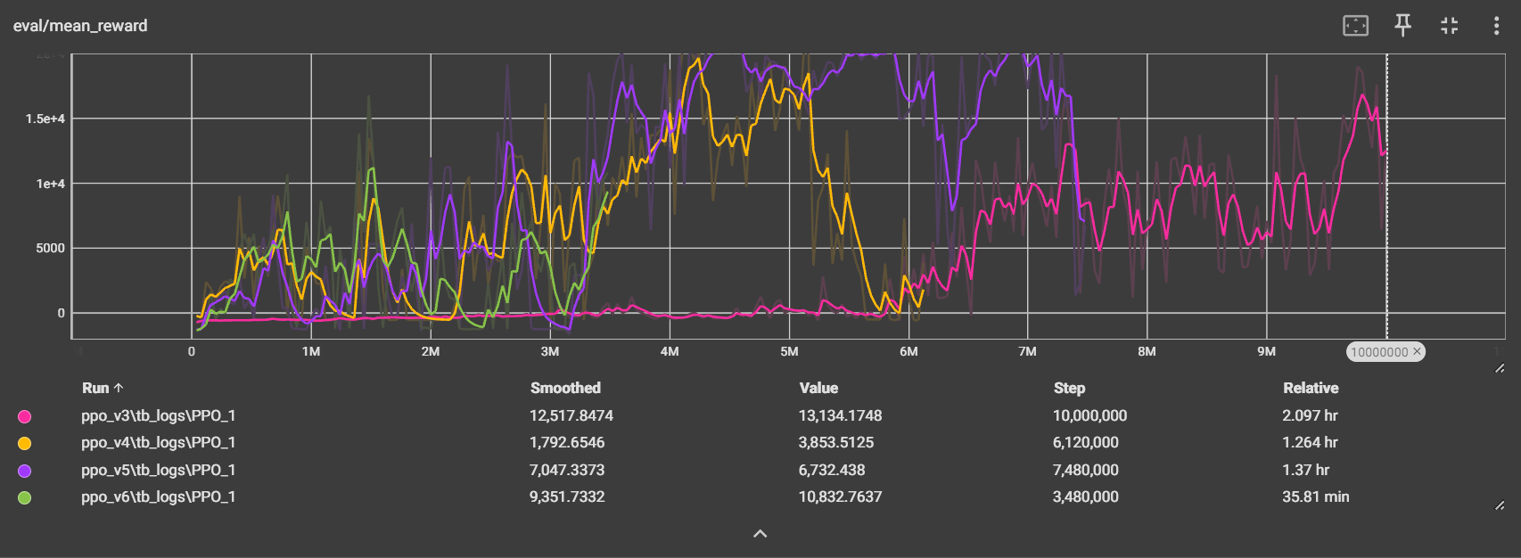 - Dense reward shaping 공식에서 환경 보상 감가율이 아닌 PPO 내부 감가율(gamma=0.99)을 사용하여 에피소드 후반부 잠재 함수가 발산함.