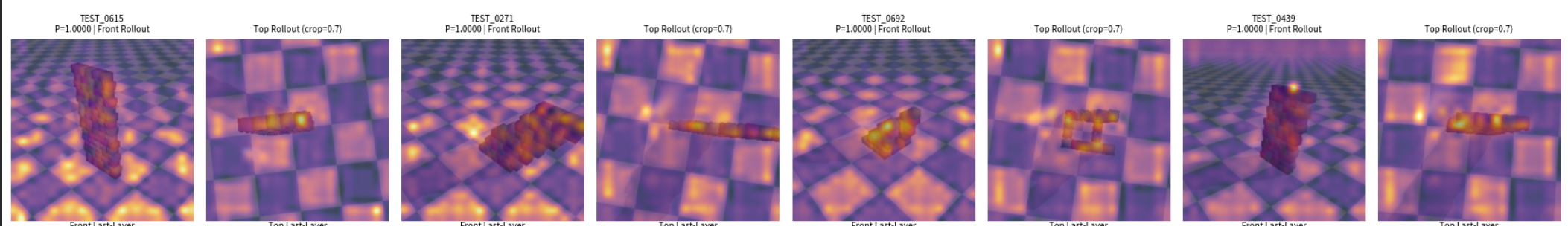 DINO 결과를 보면 블록 전체에 부드럽게 시선이 덮여 있다. 즉, 무너질지 아닐지 물리적 판단을 한 게 아니라, 블록만 예쁘게 오려내는 Segmentation를 해버린 거다.